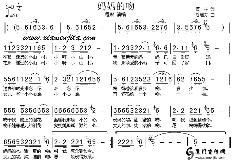 媽媽的吻 簡譜/歌詞/谷建芬簡介