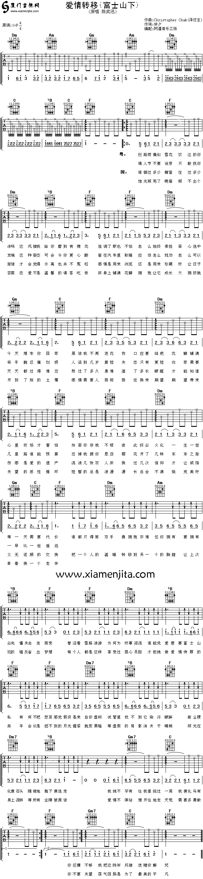 愛情轉(zhuǎn)移(富士山下)陳奕迅 六線譜/簡譜/歌詞