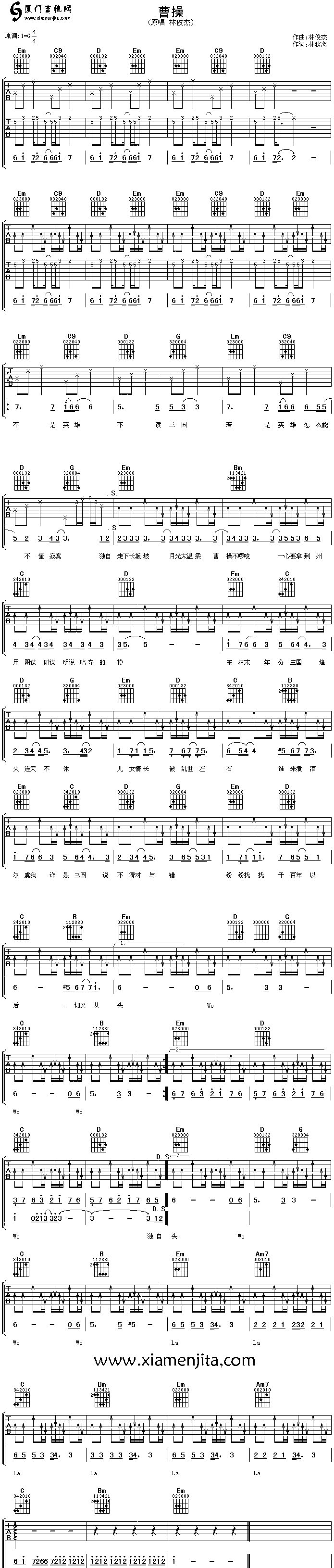 曹操(林俊杰) 六線譜/簡譜/歌詞